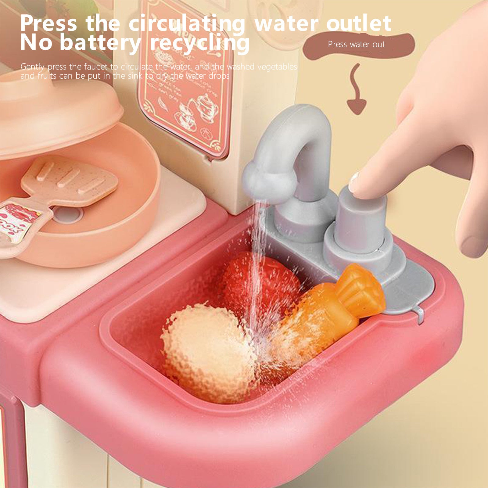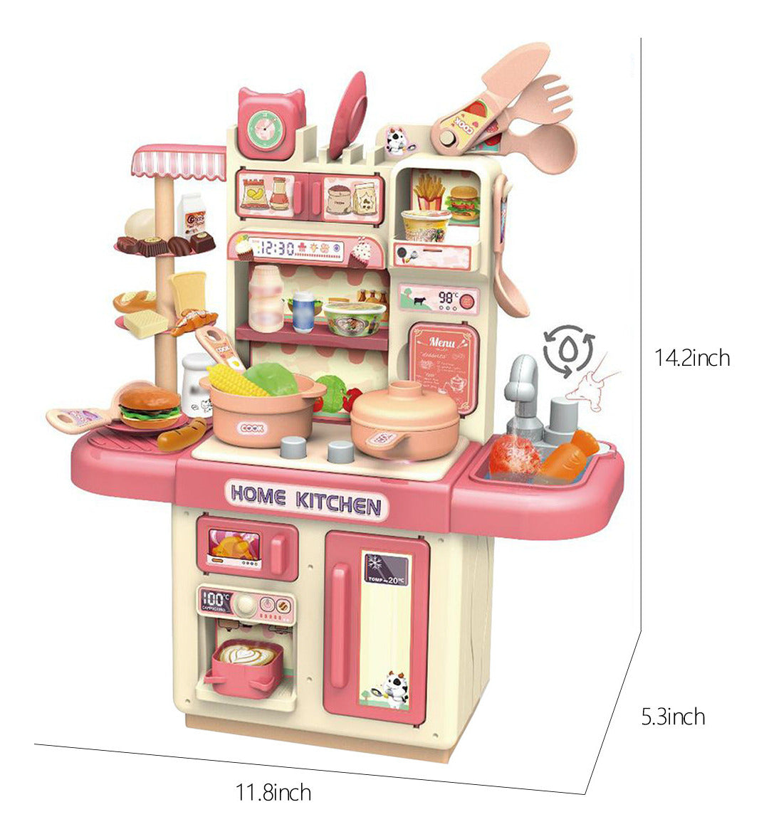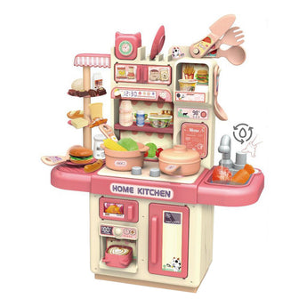 Kjo kuzhinë lodër mini është e dizajnuar për t’u ofruar fëmijëve një përvojë loje realiste dhe argëtuese. Me funksione interaktive si dritë dhe spërkatje uji, ajo stimulon imagjinatën dhe e bën lojën e gatimit edhe më tërheqëse. Seti përfshin 32 aksesorë kuzhine, të cilët imitojnë enë dhe ushqime reale, duke ndihmuar në zhvillimin emocional, vizual dhe intelektual të fëmijëve.